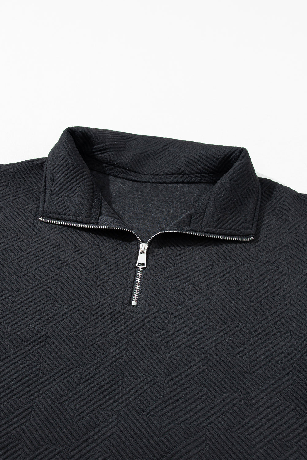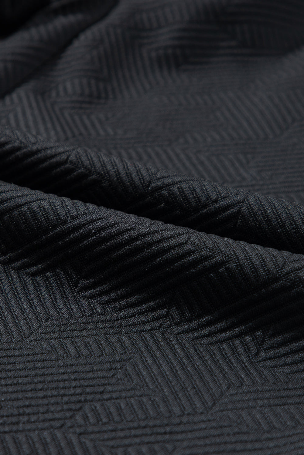Schwarzes Set mit strukturiertem Rüschenoberteil mit Flügelärmeln und Hose mit weitem Bein