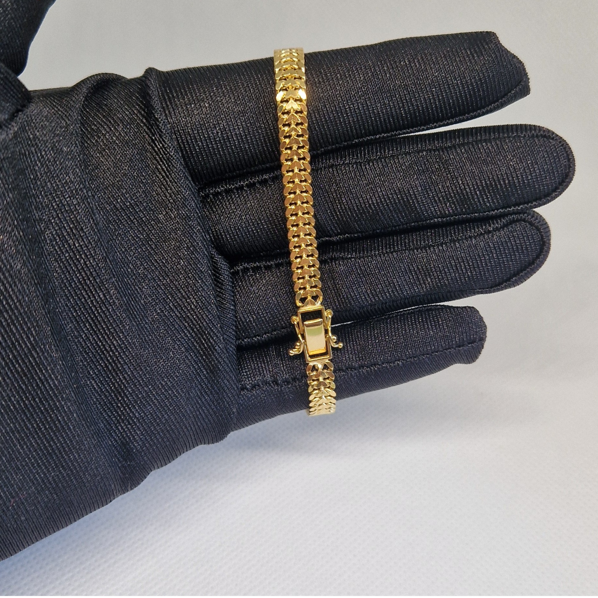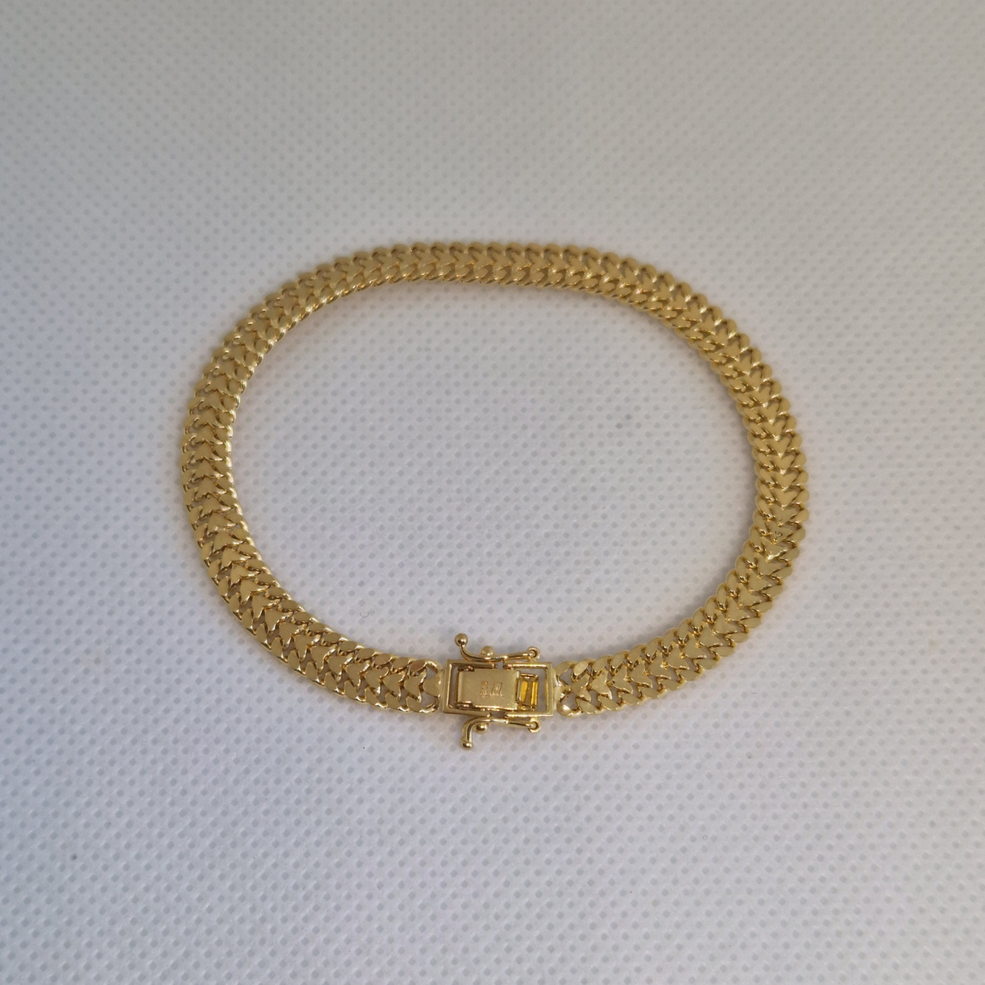 Fresh and flawless—this brand new solid 18K/750 yellow gold bracelet captures timeless romance with its iconic Heartbiz design. Each link is expertly shaped into a delicate heart form, creating a seamless, repeating pattern of interlocking hearts in a bold yet elegant curb chain style. The high-polish finish delivers that irresistible warm glow and brilliant light reflection Japanese gold is famous for—pure luxury that feels special from the very first wear.
