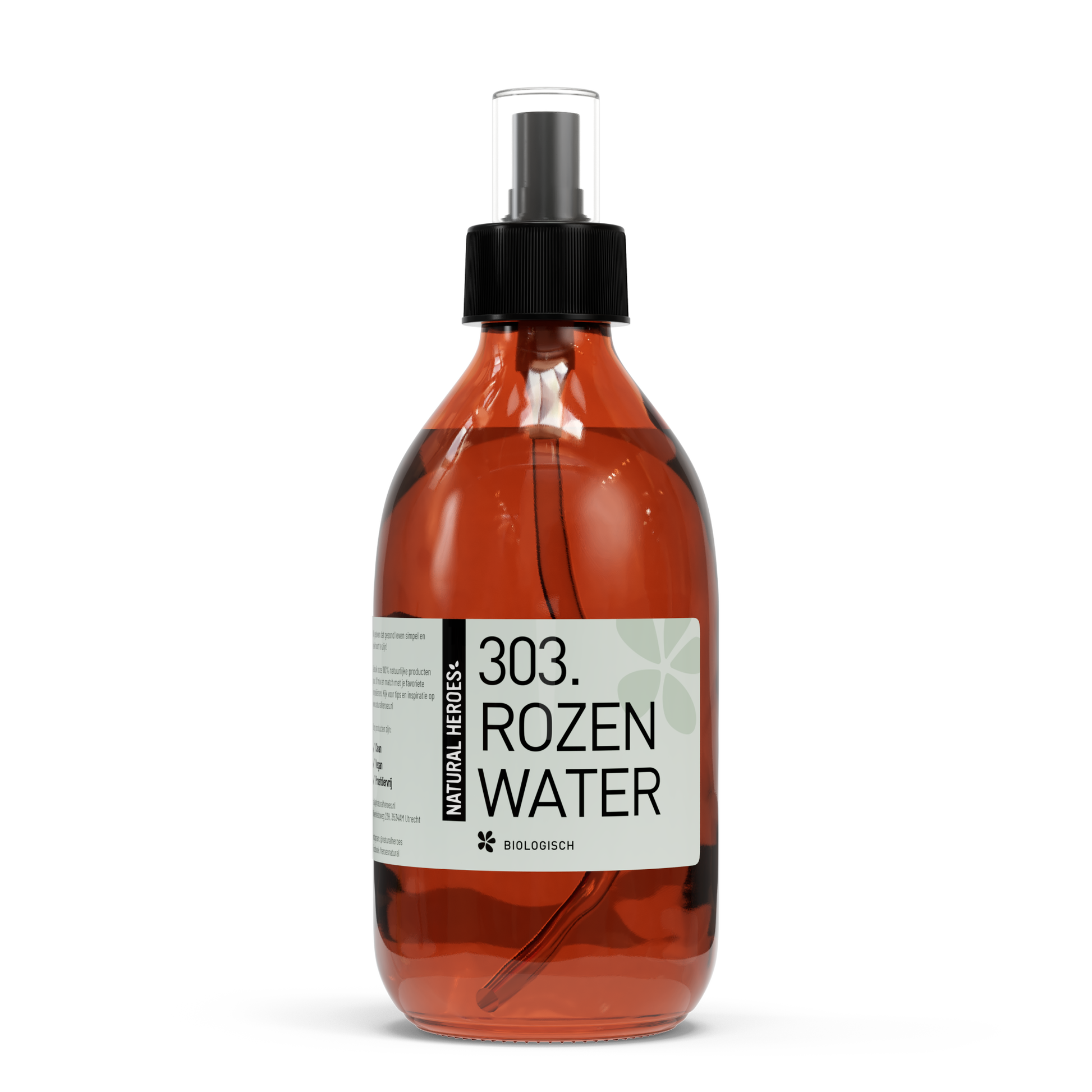 Het water, dat een bijproduct is van de productie van roos essentiële olie, heeft een diep hydraterende werking op de bovenste huidlagen, kalmeert en versterkt je huid. Het helpt de natuurlijke balans van de talgproductie te herstellen, waardoor rozenwater een heerlijke toner is bij een vette huid en onzuiverheden. Door de versterkende en tonende eigenschappen helpt het ook poriën te verfijnen en de huid gladder te maken.
