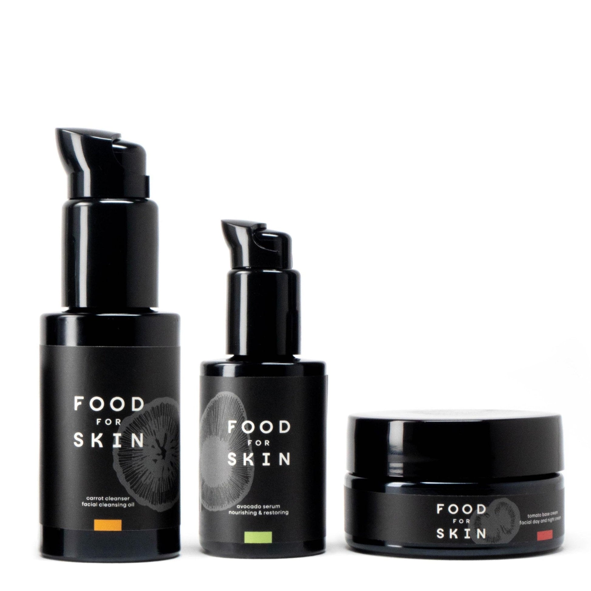 - Complete verzorgingsset met Carrot Cleanser 50 ml, Tomato Base Cream 50 ml en Avocado Serum 30 ml. Maxi Size: Carrot Cleanser 100 ml, Tomato Base Cream 100 ml en Avocado Serum 60 ml