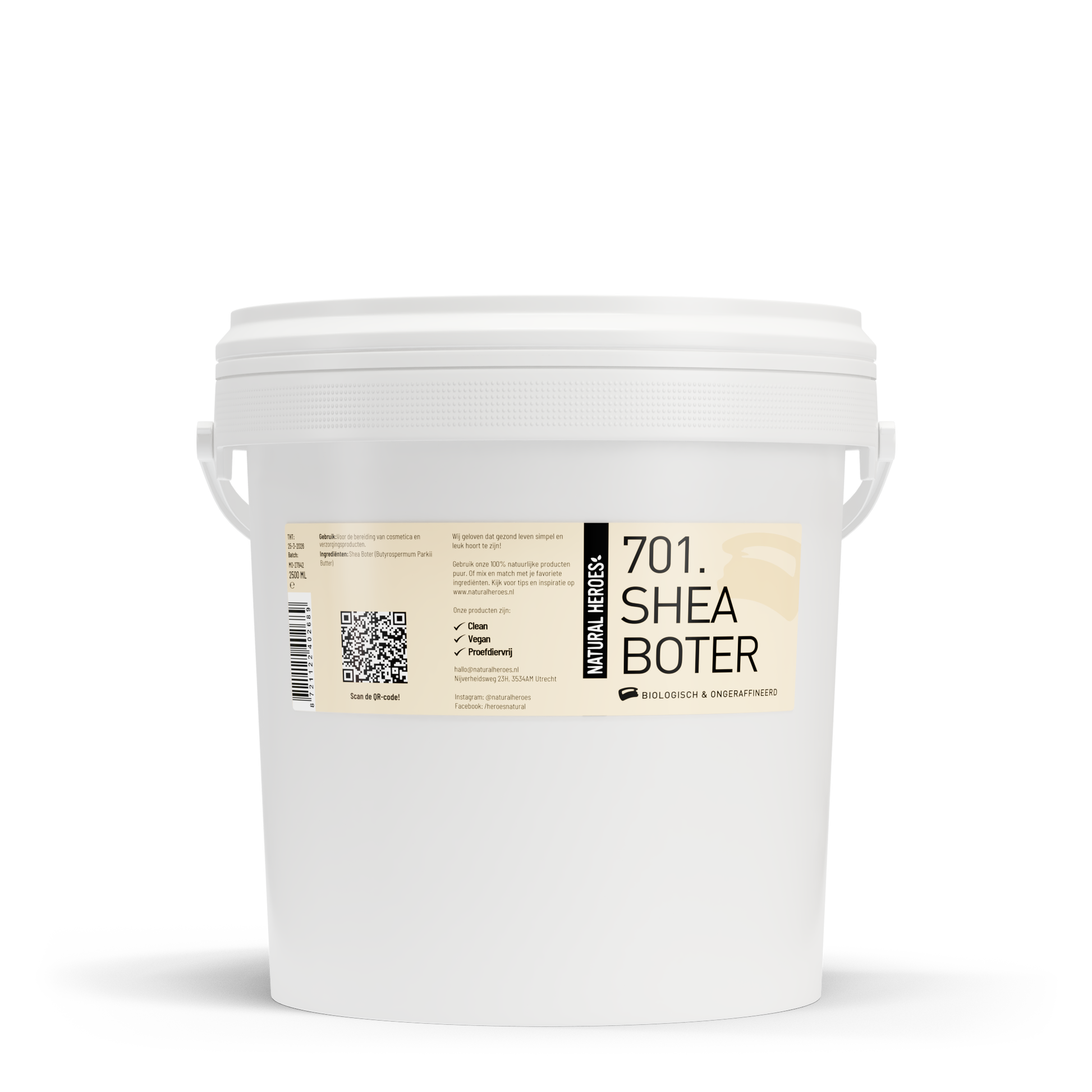 Shea Butter wordt ook wel Shea boter of Karitéboter genoemd. Het is een heerlijke hydraterende boter voor huid én haren. De latijnse naam is Butyrospermum Parkii.