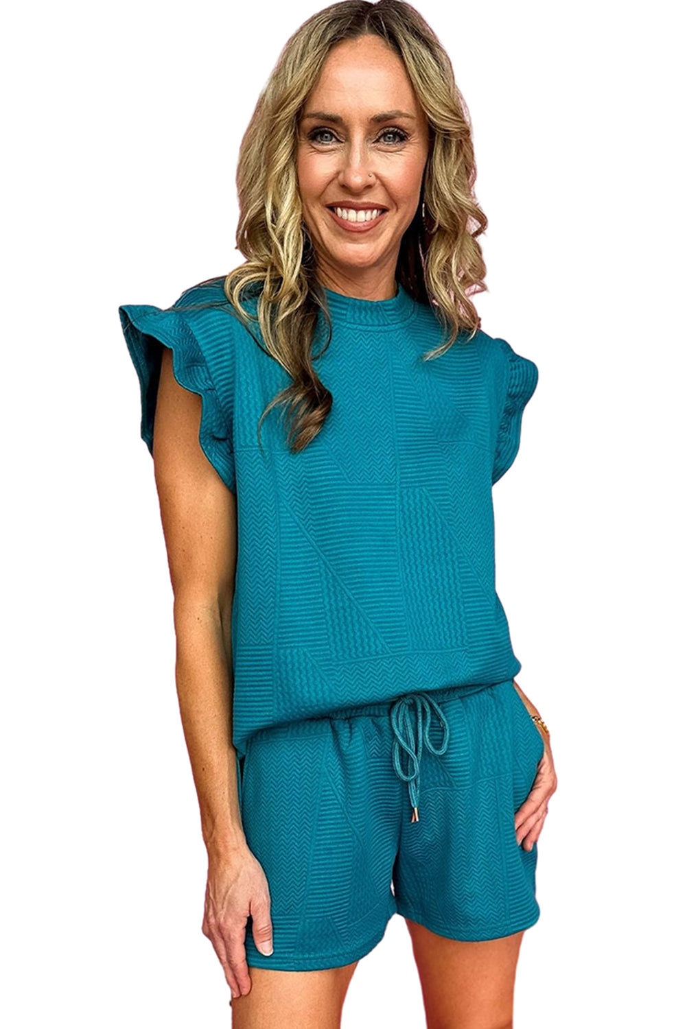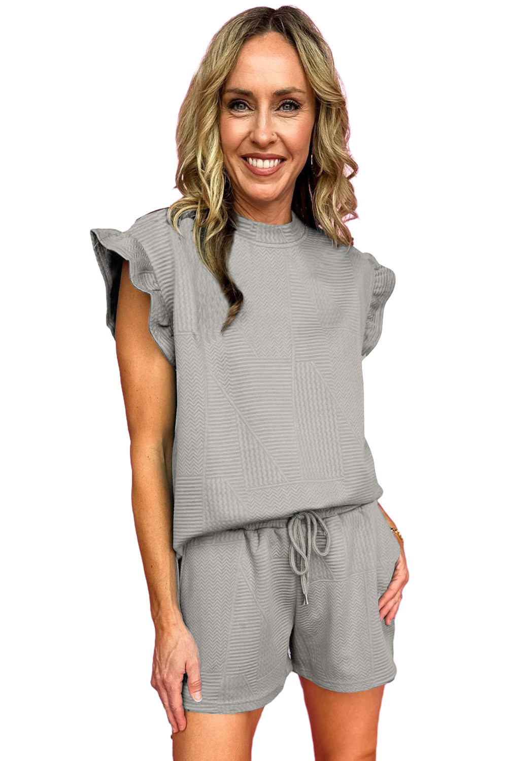 Skobeloff – Set mit strukturiertem Rüschenoberteil mit Schlitz und Shorts mit Kordelzug