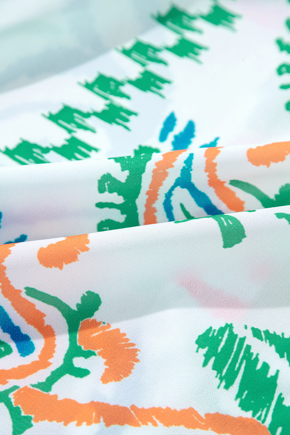 Weißes Boho-Minikleid mit Stufen und Ethno-Print